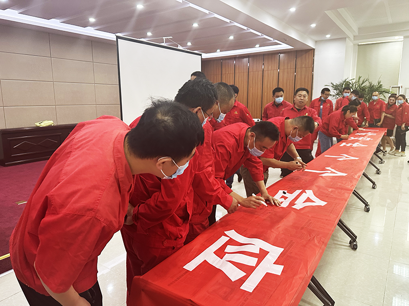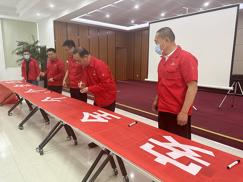 會(huì)議結(jié)束后,參會(huì)人員在“人人講安全 個(gè)個(gè)會(huì)應(yīng)急”的宣傳條幅上簽字,鄭重許下自己的安全承諾。