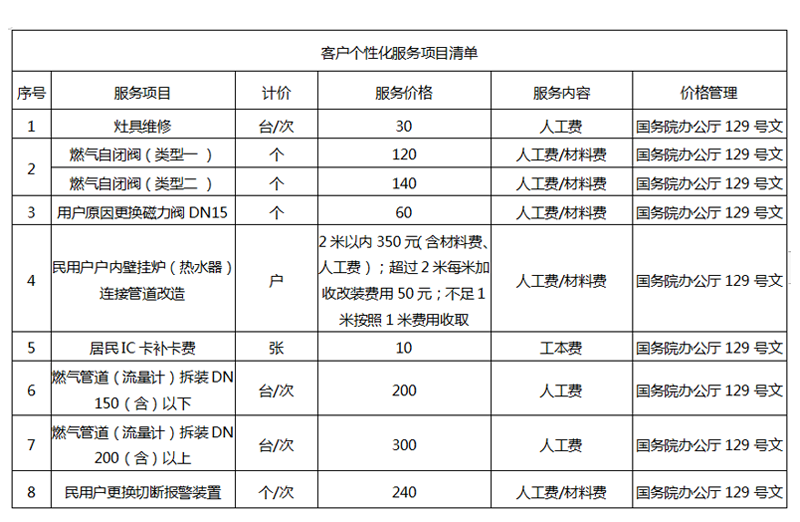 泰安安泰燃氣有限公司收費信息公示